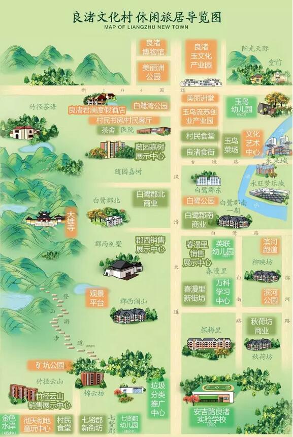 說(shuō)到項目配套,我就不一一列舉了,我來(lái)分享一個(gè)良渚的導覽圖,會(huì )讓大家對商業(yè)配套一個(gè)比較直觀(guān)的認識和了解。