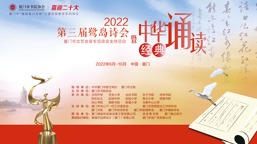 2022第三屆鷺島詩(shī)會(huì )暨中華經(jīng)典誦讀活動(dòng)以“喜迎二十大 強國復興有我”為主題,旨在引導學(xué)生感悟中華經(jīng)典詩(shī)詞所蘊含的思想和智慧,弘揚社會(huì )主義核心價(jià)值觀(guān)。中肯全程參與創(chuàng )意與策劃支持,助力弘揚中華傳統文化。